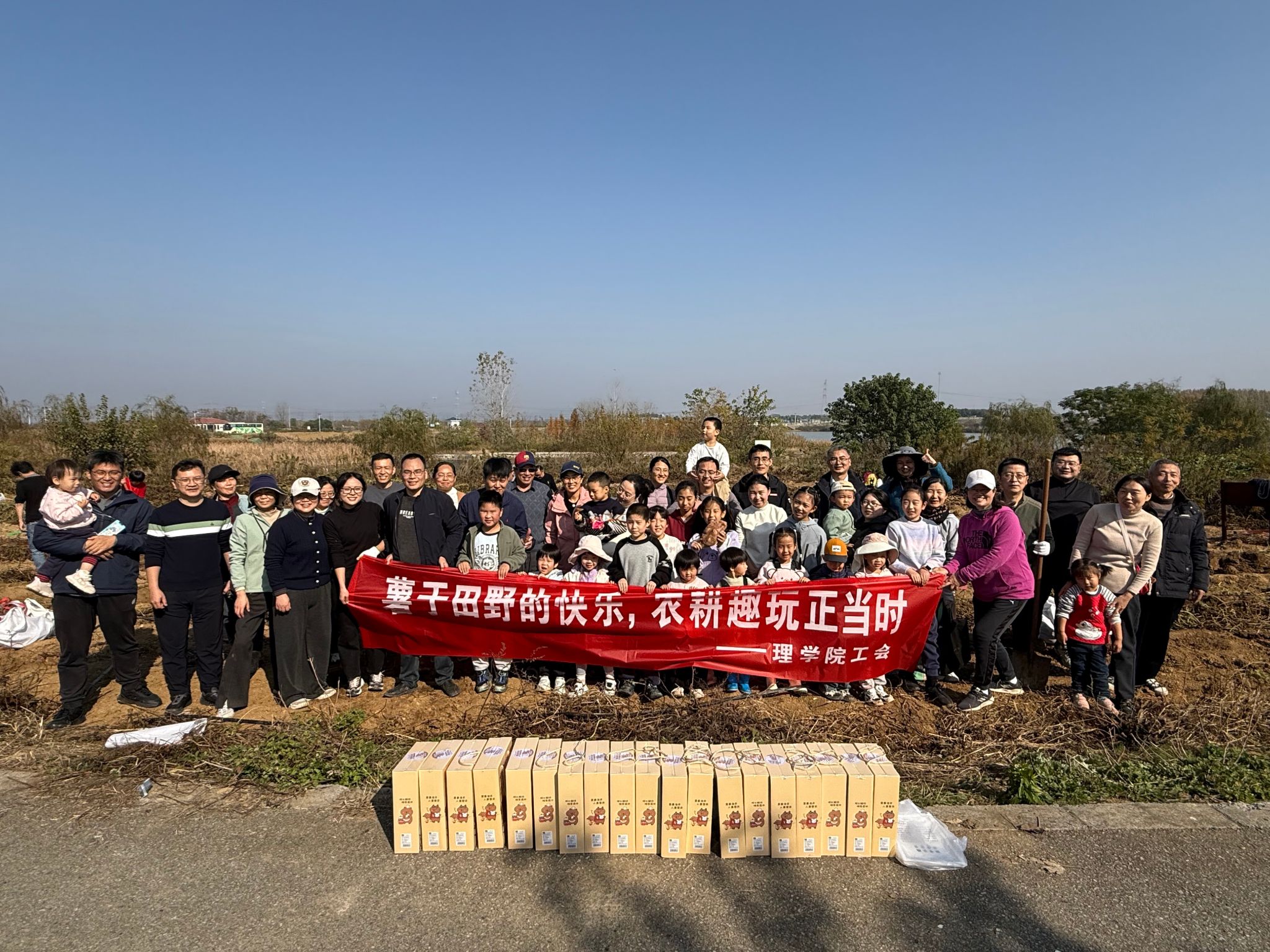 11月22日,理学院工会组织六十余名教职工及家属赴学校白马基地,开展“薯于田野的快乐,农耕趣玩正当时”亲子农耕活动,在挖薯劳作与自然探索中收获满满欢乐与成长。理学院党委书记李日葵、副院长吴顺凡、工会主席朱旭东参加活动。