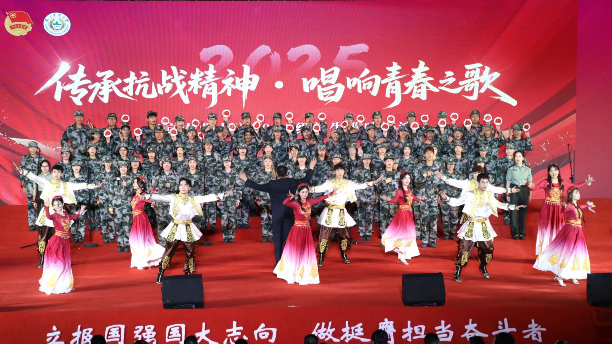 为纪念中国人民抗日战争暨世界反法西斯战争胜利80周年,全面深化2025级学生军训期间爱国主义教育与集体主义教育。9月25日,我校在卫岗校区体育馆举办的2025级新生“传承抗战精神,唱响青春之歌”歌咏汇演,理学院以一曲《青春舞曲》荣获2025级新生歌咏汇演特等奖!
