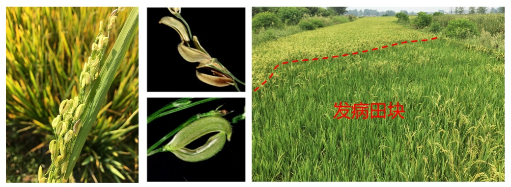 稻田土壤中的砷不仅通过食物链威胁人体健康,还会抑制作物生长,导致减产。其中,有机砷化合物二甲基砷(DMA)对水稻具有强生殖毒性,可诱发水稻直穗病。该病害是我国长江中下游地区常见的水稻生理性病害,多发生于水稻孕穗末期,表现为抽穗后籽粒无法灌浆结实,或形成小青粒,颖壳畸形、呈鹰嘴状,穗部直立(图1),严重时甚至无法抽穗,造成产量大幅下降甚至绝收。该团队前期研究证实,水稻颖壳中过量积累的DMA是导致直穗病发生的主要原因。