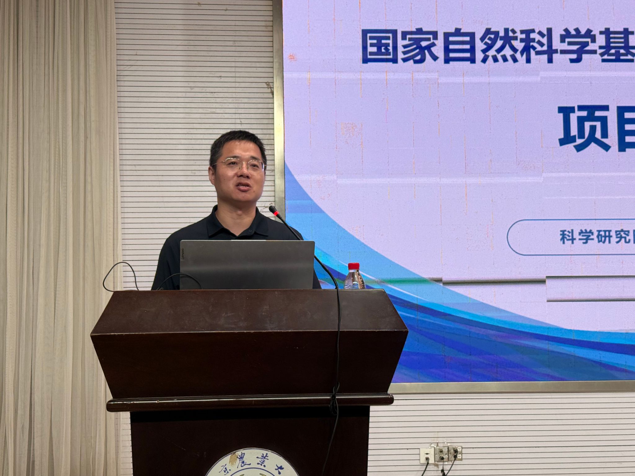 会议邀请校科研院副院长葛焱作2026年国家自然科学基金申报专题辅导。他结合2025年全国及我校基金申报数据进行纵横对比分析,并介绍江苏省基础研究计划项目申报要点,为教师精准对接科研需求、提升申报质量提供专业指导。